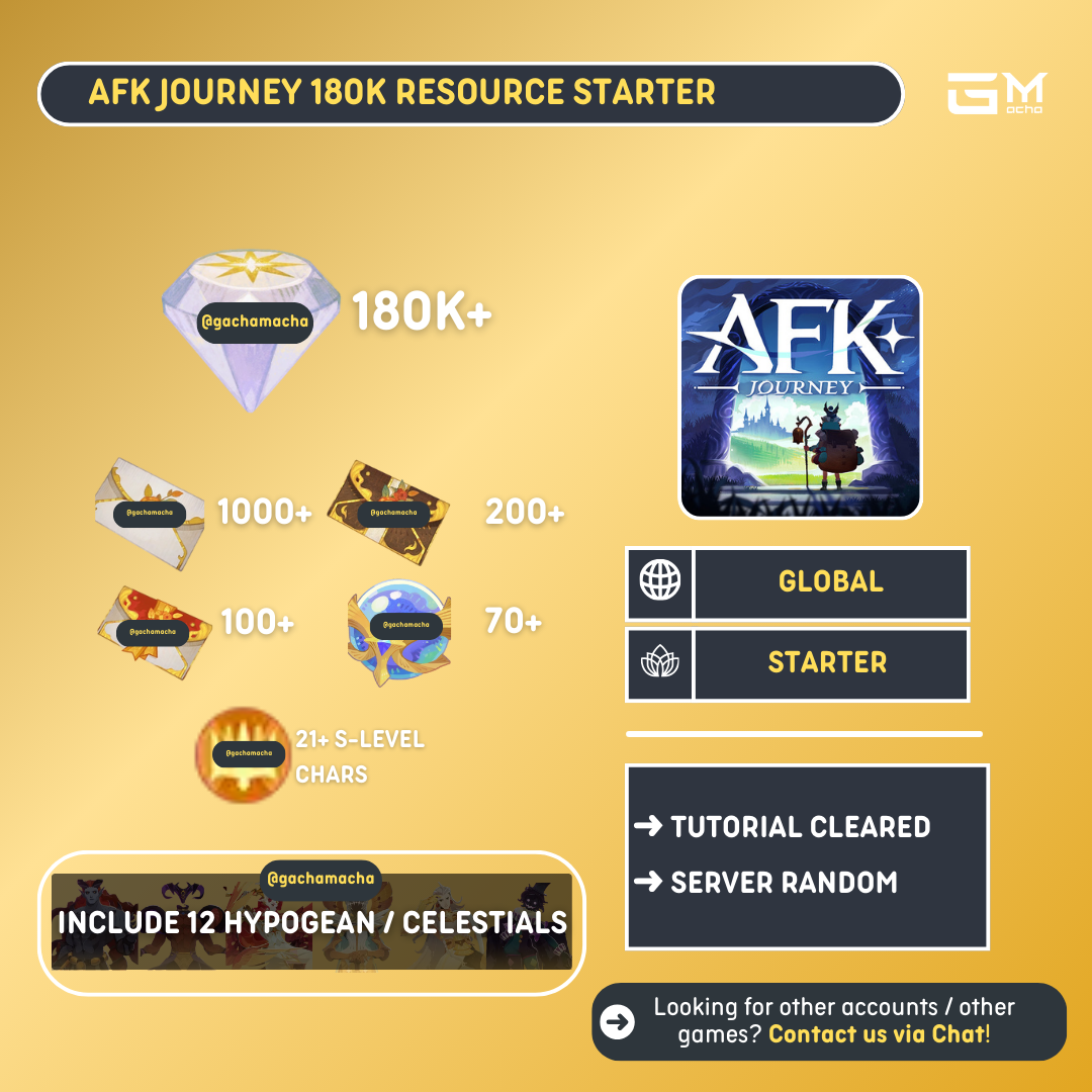 Global | AFK Journey Starter | 180k Diamonds + Other Resources | GL-AFKJ-XQ180